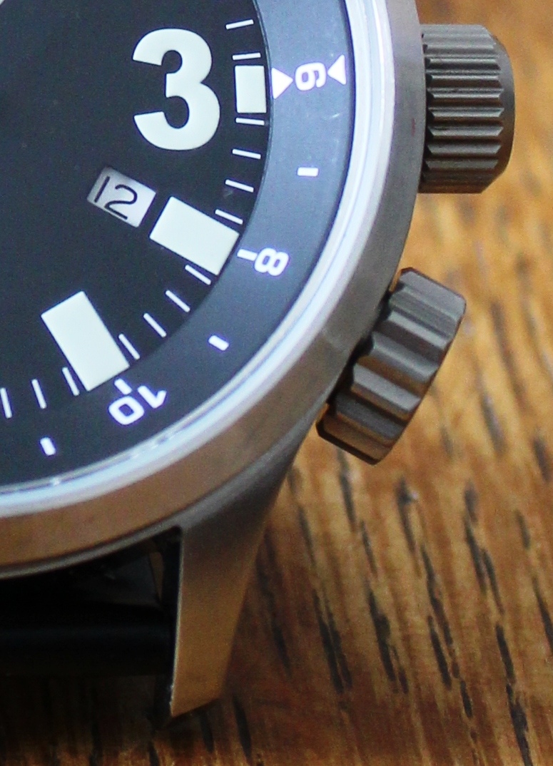 The crowns are hidden by the unique futuristic design of the 45mm case, a somewhat hexagonal design with a slight arch and all the watches are equipped with K1 mineral crystal glass which is shatterproof and treated with an anti reflective coating.
