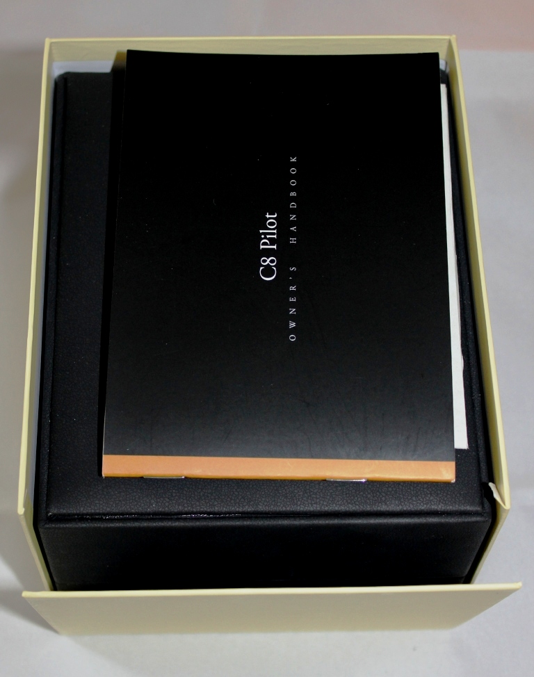 First off, when your C8 Pilot is delivered it comes very well presented in a black leather presentation box with light cream interior (which most would probably keep as it is a quality box to store watches that don’t require a winder), Along with this you get a quick start/functions guide, the guarantee and letter congratulating you on your purchase and a Christopher Ward microfibre cloth. All very nicely done. You feel like you have purchased a luxury timepiece from get go.