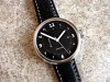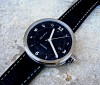 The apparent size is the effect of the 41 mm round case design, and the fact that the case has no bezel. This affords the sapphire crystal to be large at 35 mm, to allow maximum readability of the equally large dial. The dial itself is mat black, and that combined with optic white dial lettering, gives the effect of a virtually invisible crystal.
